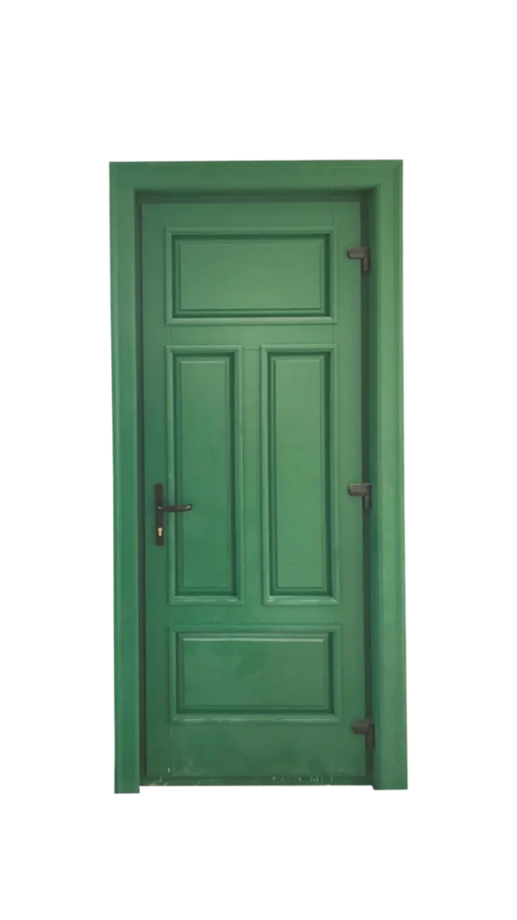 Rama de ușă, tocul și panoul central sunt realizate din lemn de molid/ paltin/ frasin dublu, triplu stratificat pentru rezistență maximă în timp.