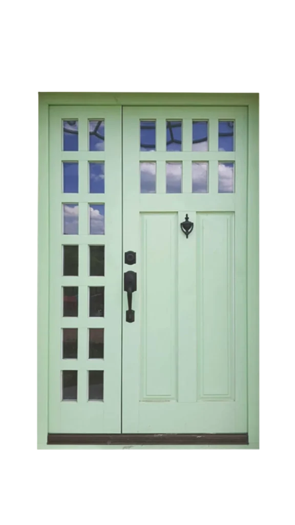 Rama de ușă, tocul și panoul central sunt realizate din lemn de molid/ paltin/ frasin dublu, triplu stratificat pentru rezistență maximă în timp.