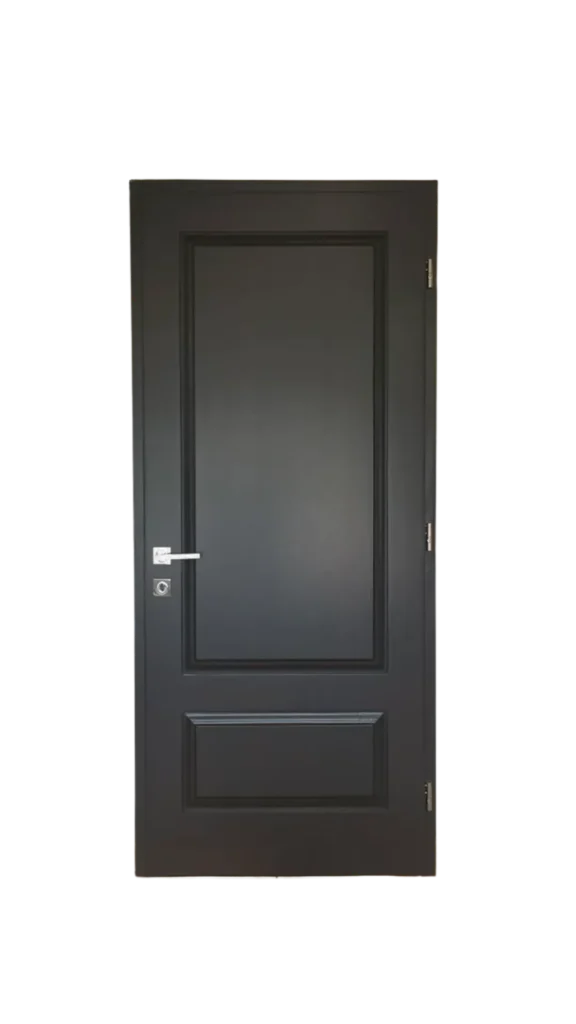 Rama de ușă, tocul și panoul central sunt realizate din lemn de molid/ paltin/ frasin dublu, triplu stratificat pentru rezistență maximă în timp.